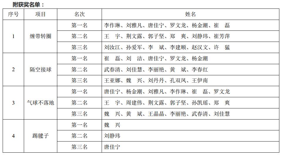 朗朗的歌聲之后, 大家投入到游戲當中,在三個團體項目(纏帶轉(zhuǎn)圈、 隔空接球、氣球不落地)和一個單人項目(踢毽子)游戲中,大家表現(xiàn)的十分熱情, 充分提現(xiàn)了員工們積極向上的精神面貌。